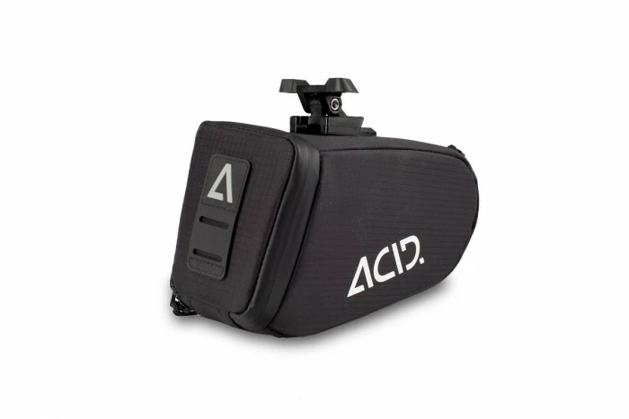 - Pack das Wichtigste ein. Die Acid Click L Satteltasche hält deine Habseligkeiten sicher unter dem Sattel verstaut, wo sie nicht im Weg stehen. Das kompakte Design, der wasserabweisende Reißverschluss und der Rücklichthalter sind typische Details, die eine Satteltasche von Cube besonders machen.