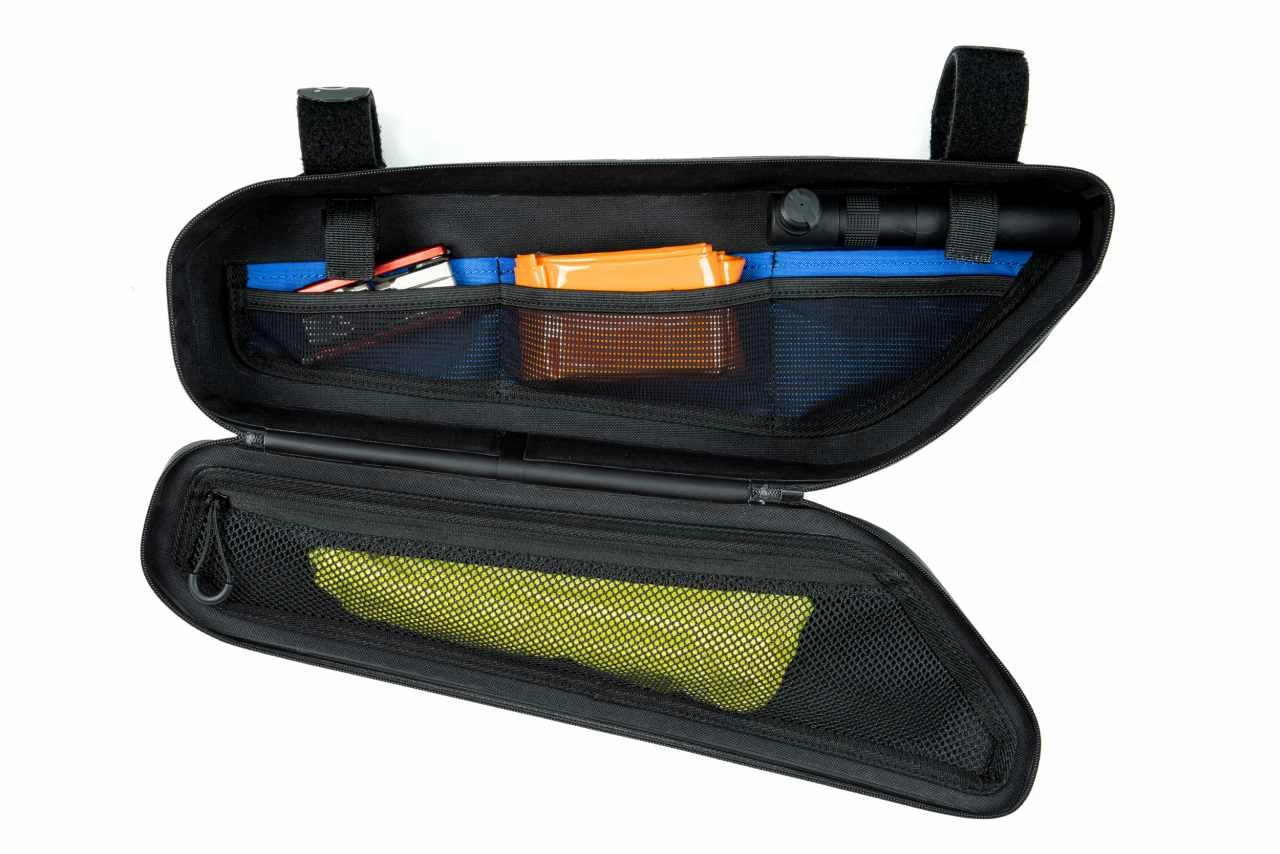 - Die gesamte Pack Pro BikePacking-Serie wurde mit erfahrenen BikePackern entwickelt. Die Pro 2 ist die kleinste Rahmentasche dieser Serie. Die verschweißte, PVC-freie Konstruktion ist wasserdicht, das Außenmaterial robust und pflegeleicht. Dank umlaufendem Molle-System lässt sich die Tasche an verschiedensten Rahmentypen befestigen. Seitliche Reißverschlussfächer mit glatt laufenden Zippern bieten Platz für Kleinigkeiten. Auch die Innenaufteilung ist gut durchdacht: Werkzeug und Ersatzteile lassen sich in mehreren Innenfächern übersichtlich verstauen und durch farblich abgesetzte Fächer leicht wiederfinden. Reflektierende Elemente erhöhen die Sichtbarkeit im Straßenverkehr.