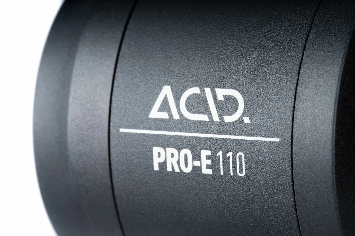 - Spot an für das Acid E-Bike Frontlicht Pro-E 110! Für herausragende Ausleuchtung sowohl im Straßenverkehr als auch im Gelände sorgt die Linse mit MTi Technology und lässt das leistungsstarke Licht mit 110 Lux und 550 Lumen in die Dunkelheit strahlen. Mit dem 130 cm langen Lichtkabel mit Stecker für Bosch Motoren ist der Anschluss am E-Bike ein absolutes Kinderspiel. Inklusive Lenkerhalter für 31,8 und 35 mm Durchmesser, GoPro-kompatiblem Universaladapter und Gabelhalter für flexible Montage.