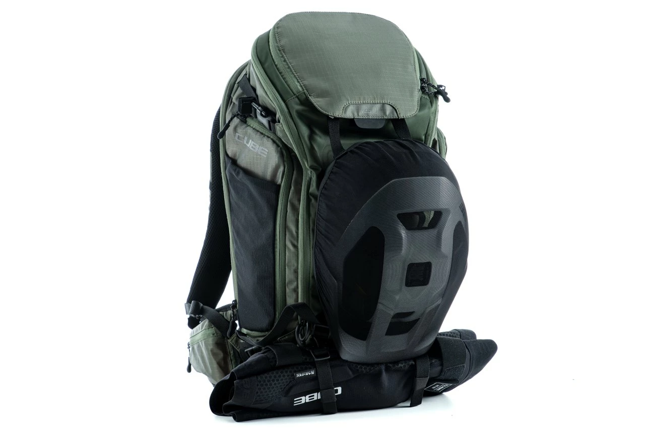 - Ob für Transalp oder andere Mehrtages-Abenteuer: Der Cube ATX 30, Cubes größter Rucksack im Portfolio, bietet viel Stauraum. Dank dem von Cube entwickelten Natural FitRückensystem und gepolsterten Hüftgurt sitzt der Rucksack dabei immer noch optimal. Das Gewicht wird angenehm verteilt, der Rücken ist gut polstert und belüftet. Dank Molle-System lässt sich zusätzlich die Cube Gear Bag 1 mit Klettbändern sicher am Rucksack fixieren. Und wenn mal weniger Klamotten dabei sind, wird der Rucksack mit den seitlichen Kompressionsriemen einfach kompakt gezogen. Dank sinnvoller Fächeraufteilung, zwei Werkzeugfächern und Smartphone-Seitenfach hast du alles Wichtigste parat. Plus Raincover und Trinkblasenfach – da bleiben keine Wünsche offen.